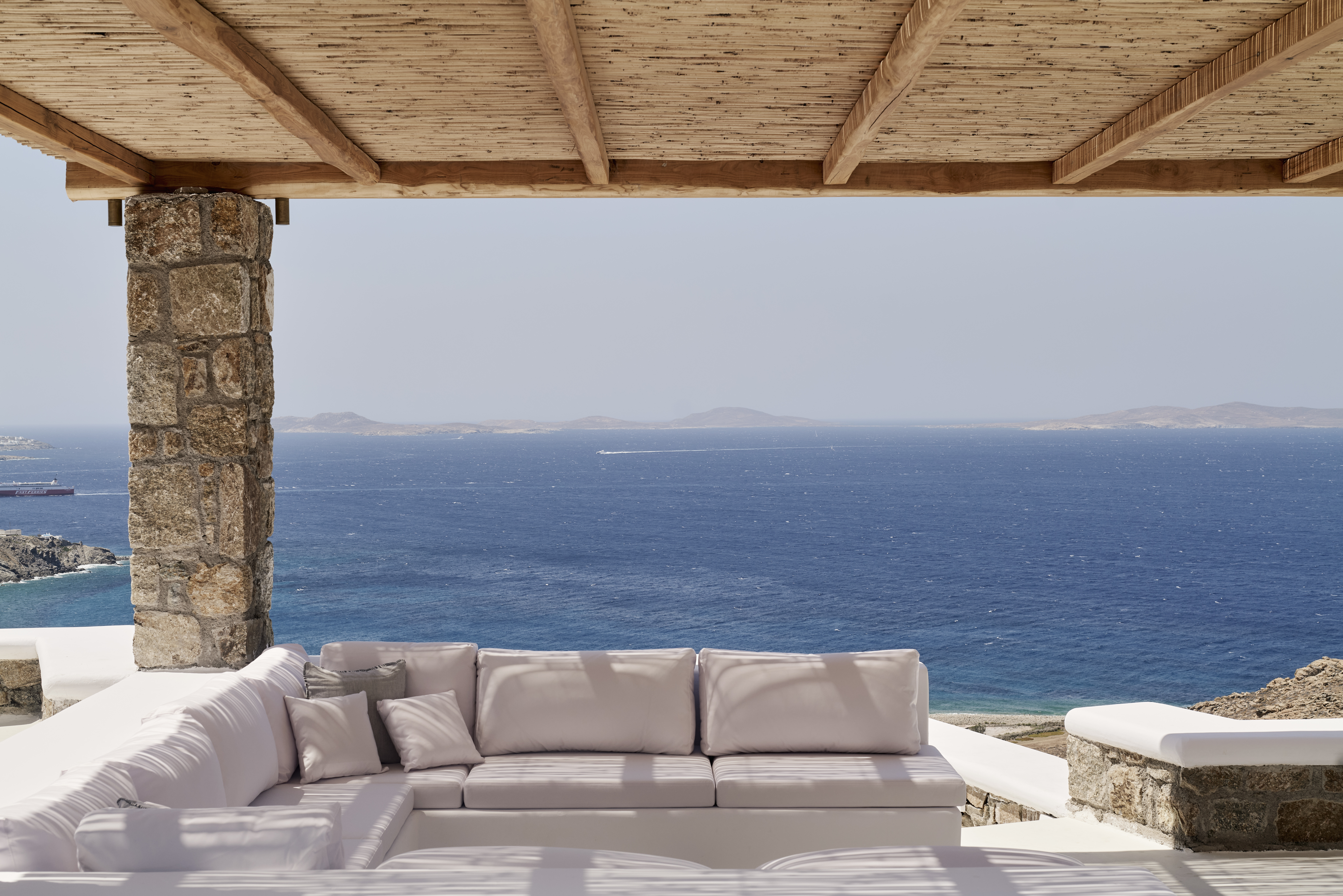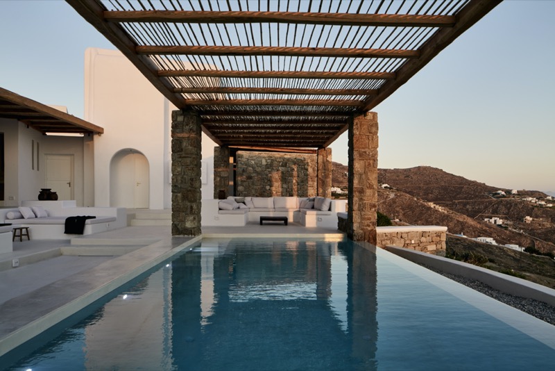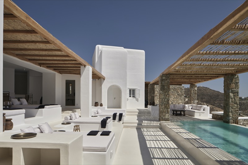 Located just 5.5 km from thepicturesque Mykonos Town, it features six (6) double bedrooms and may accommodate up totwelve (12) guests. The extraordinary panoramic sea and sunset views to Delos, Rhenia and Tinosislands, the comfortable indoor spaces, the Infinity swimming pool and open-air heated plungepool, the al fresco dining area and the pergola shaded verandas invite guests to relish their timeand find their own unique rhythms, basking in tranquility. A modern, state-of-the-art propertywhere the bohemian style, minimal Cycladic architecture and exceptional hospitality are celebratedand where every experience is infused with the essence of opulence.