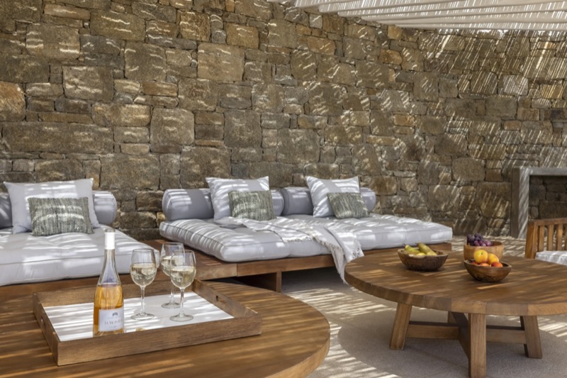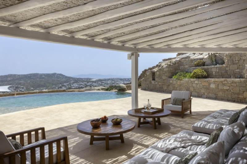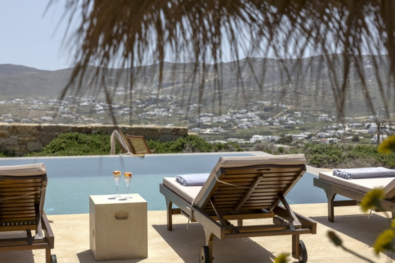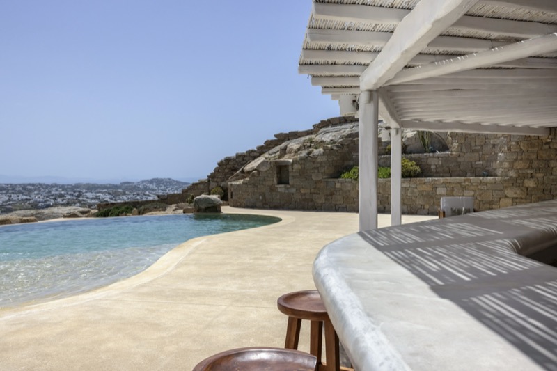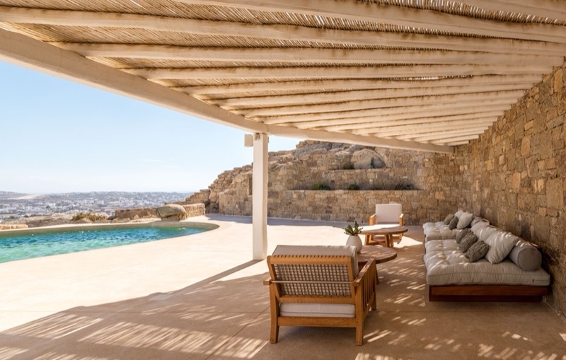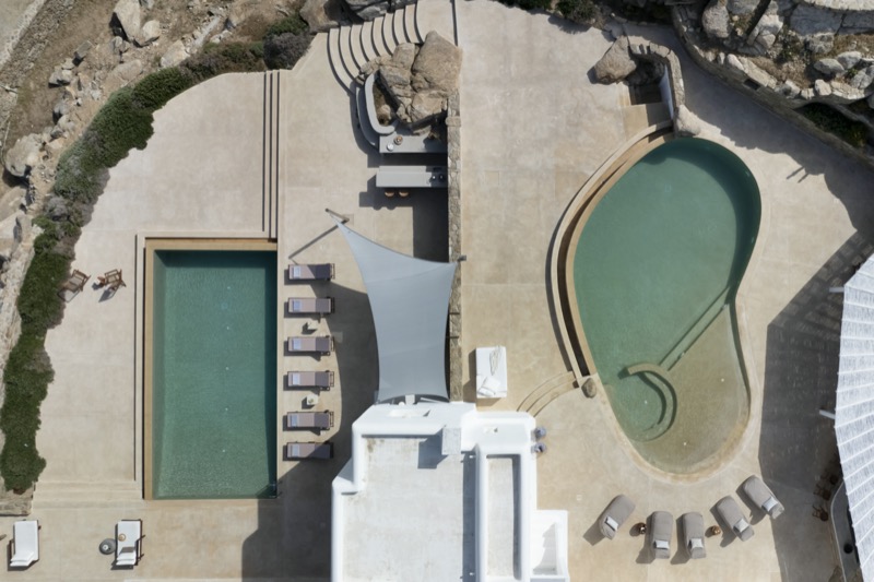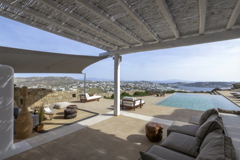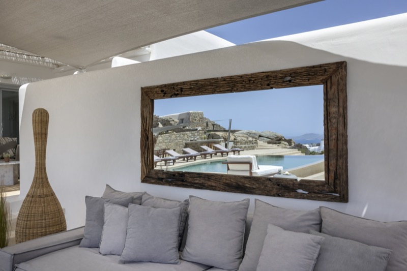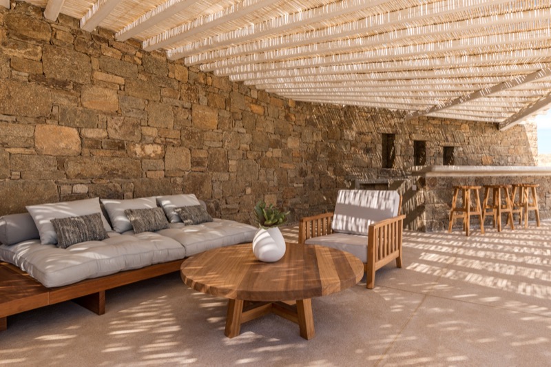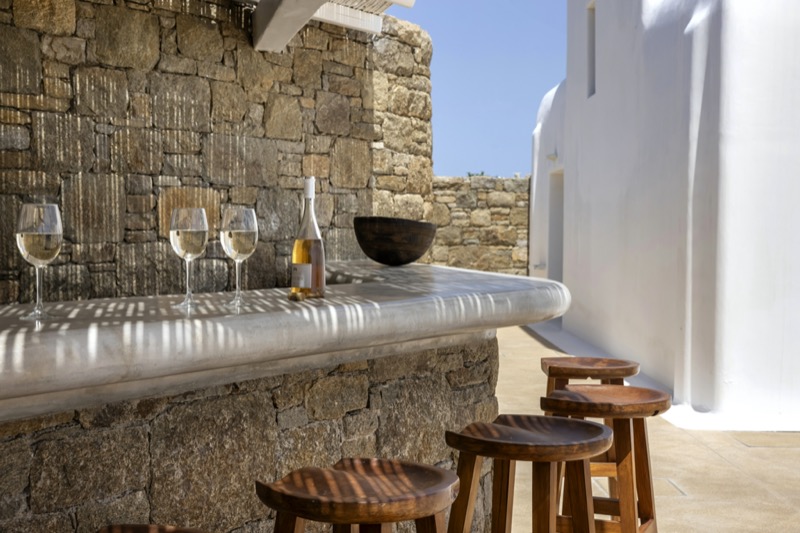Outside, the villa features a private pool surrounded by shaded lounges, dining spaces, and terraces that invite slow mornings and long evenings under the stars. Though peaceful and private, the villa is just a short drive from beaches, local tavernas, and the vibrant energy of Mykonos Town.