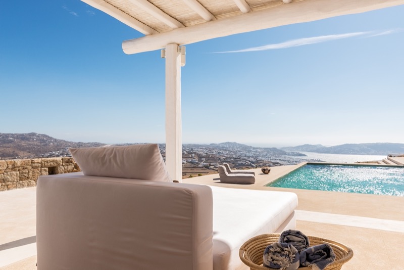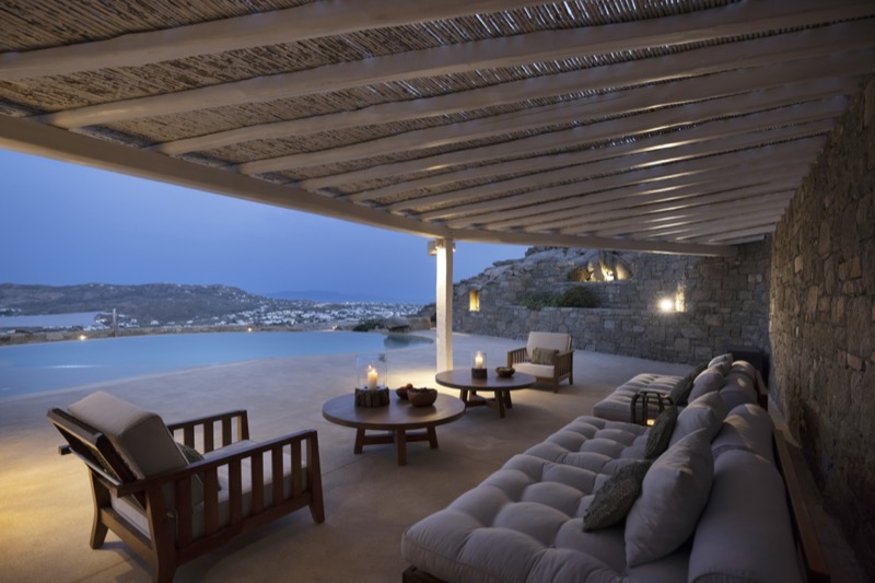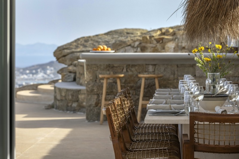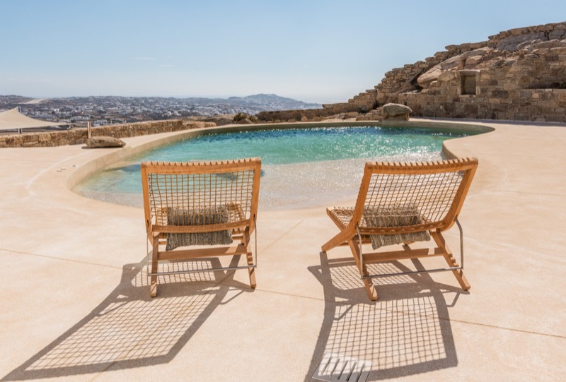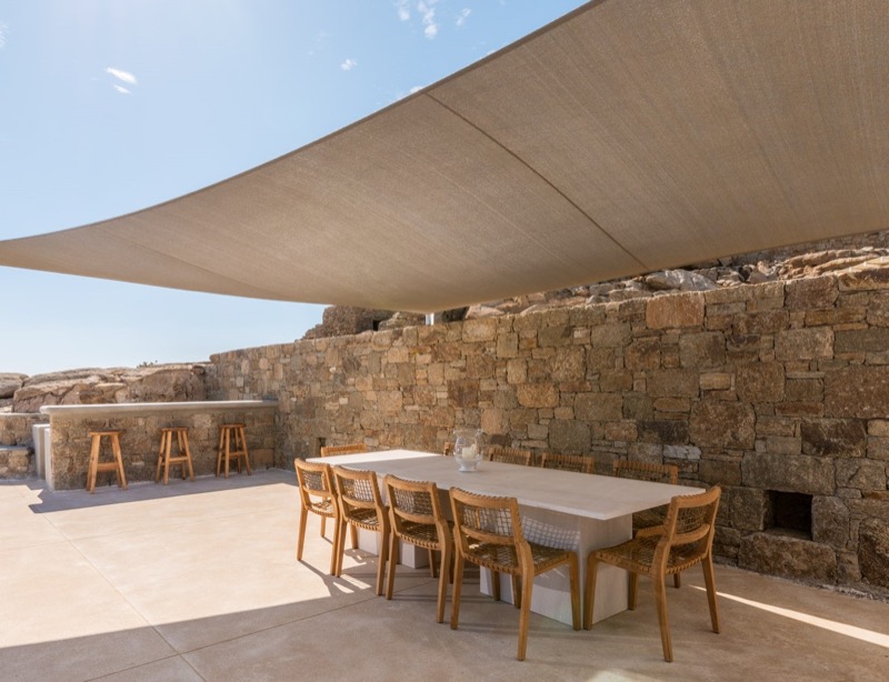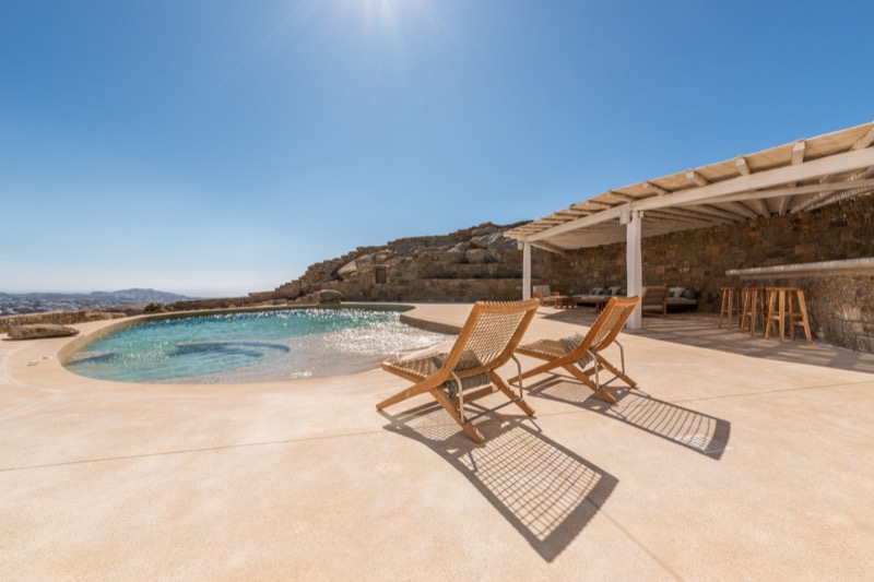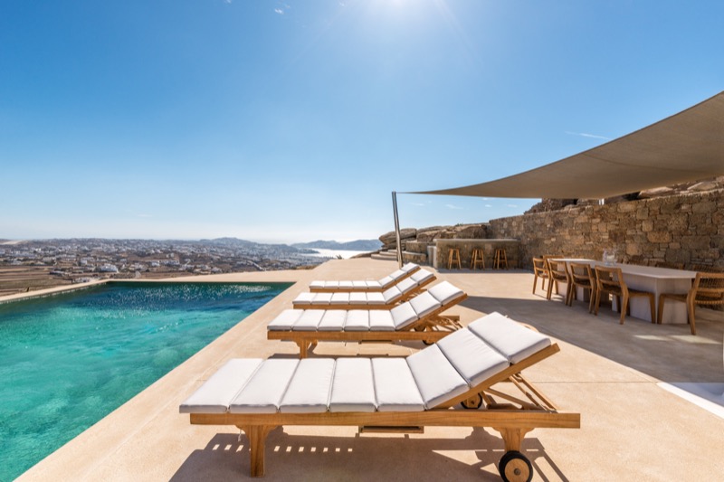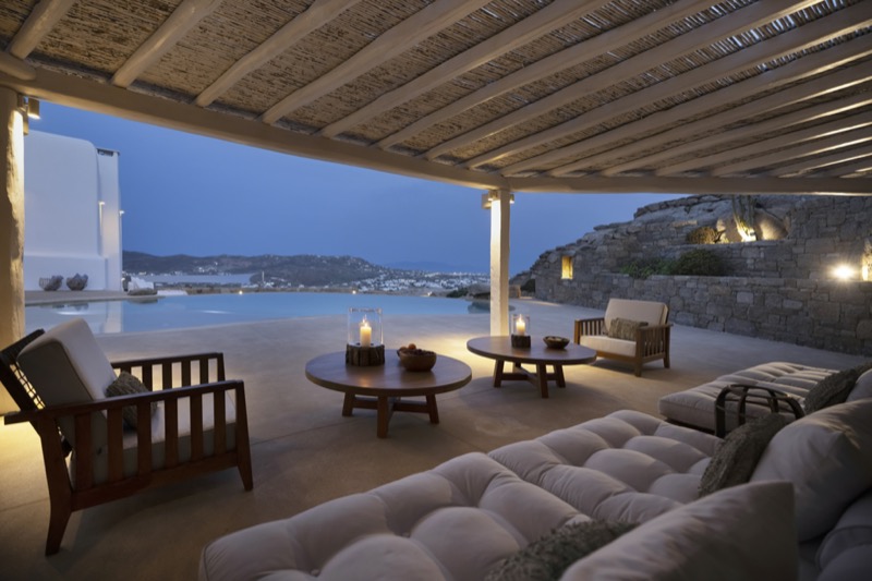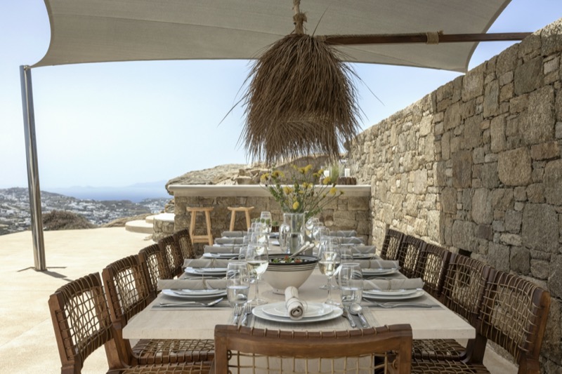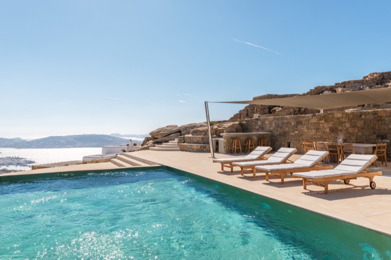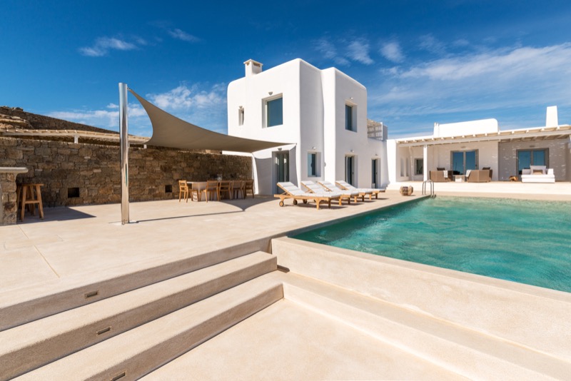 Outside, the villa features a private pool surrounded by shaded lounges, dining spaces, and terraces that invite slow mornings and long evenings under the stars. Though peaceful and private, the villa is just a short drive from beaches, local tavernas, and the vibrant energy of Mykonos Town.
