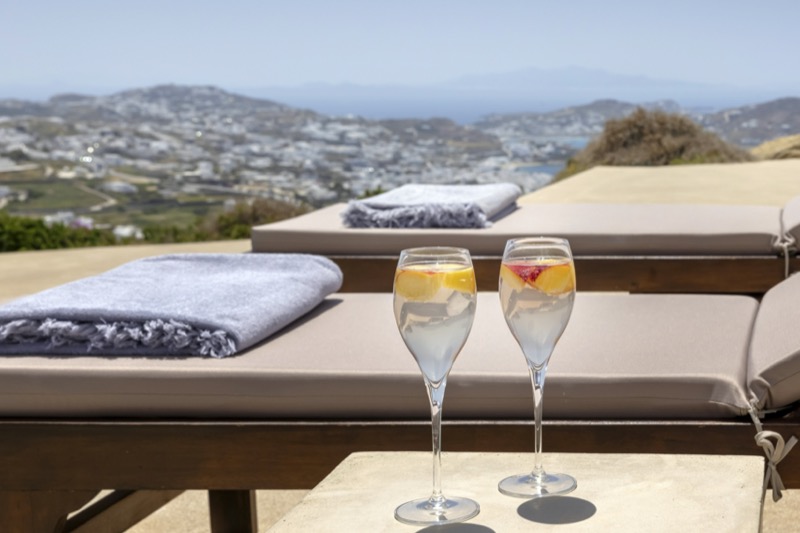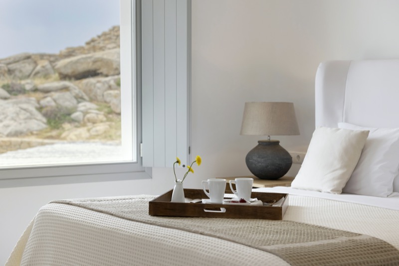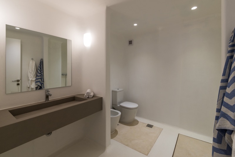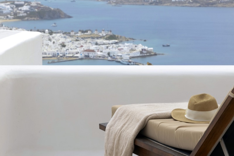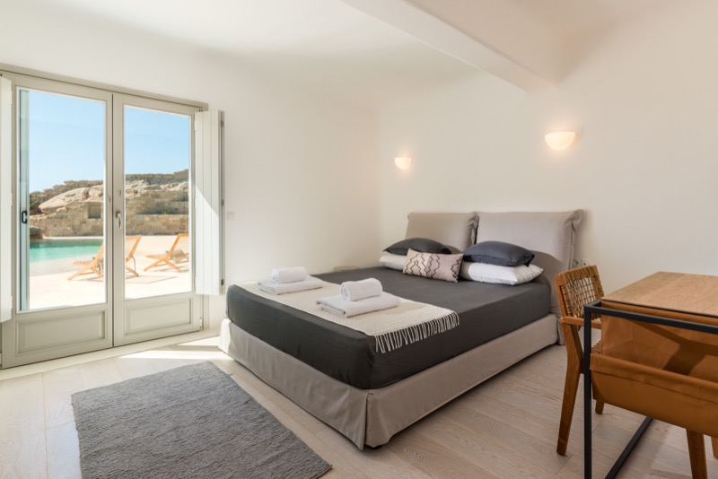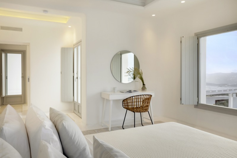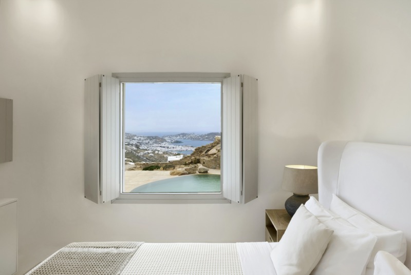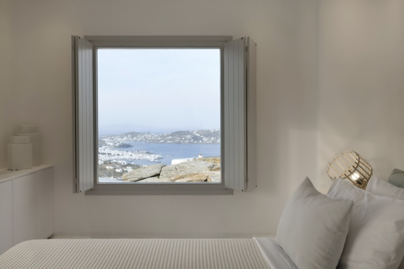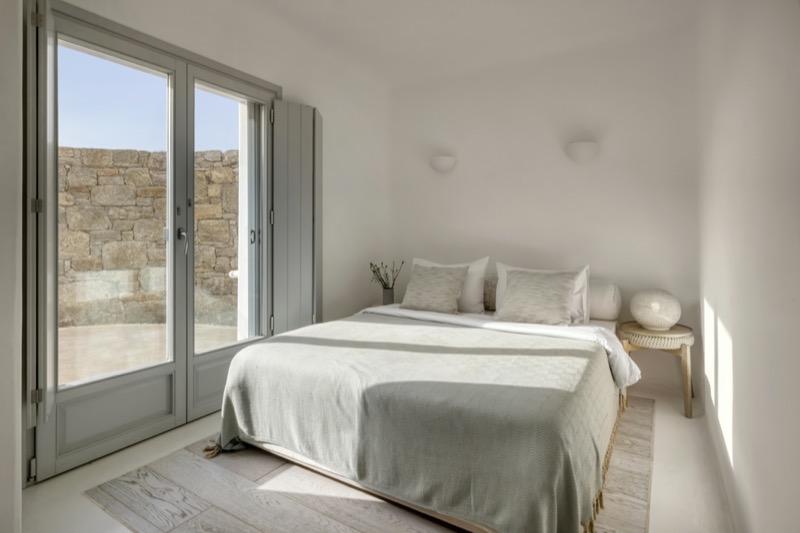 One master bedroom with king size bed, A/C, en-suite bathroom with shower, safe box, hairdryer, walk-in closet, Wi-Fi, amazing view of Mykonos town, access to private terrace