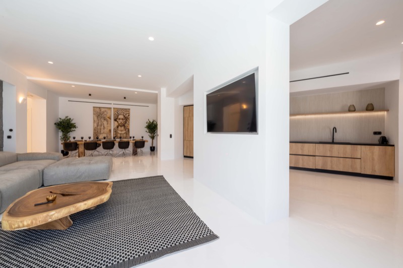 The villa’s design reflects the natural beauty of Mykonos, blending modern architecture with traditional Mediterranean elements. Every room is carefully designed with luxury in mind, ensuring your comfort and relaxation at every moment.